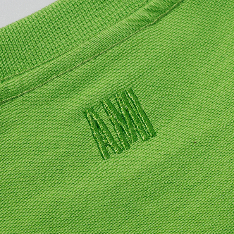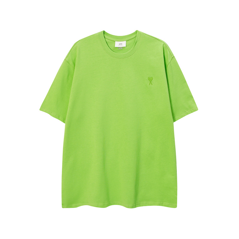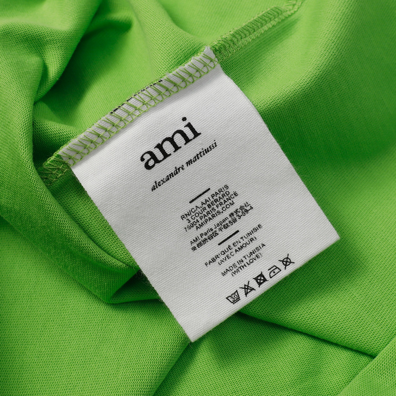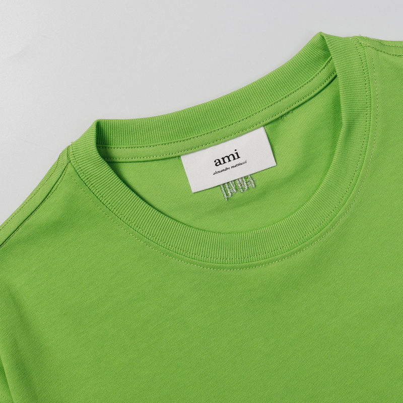 100% хлопковая AMI зелёная футболка свободного кроя и коротким рукавом