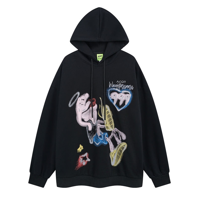 ACQT черного цвета мягкое худи с рисунком без карманов