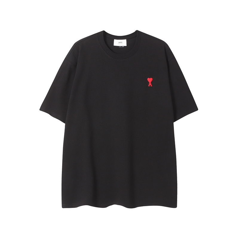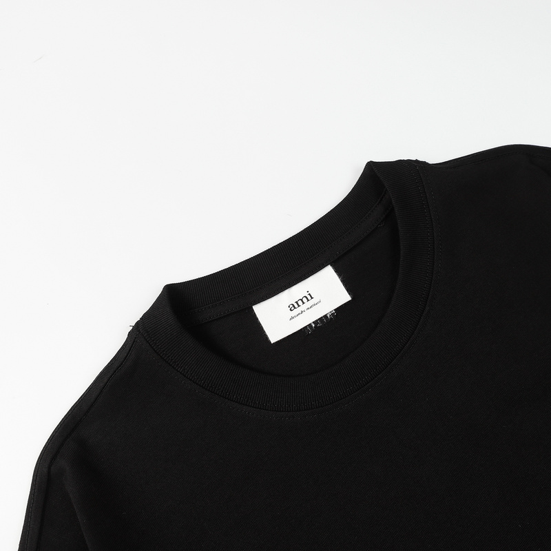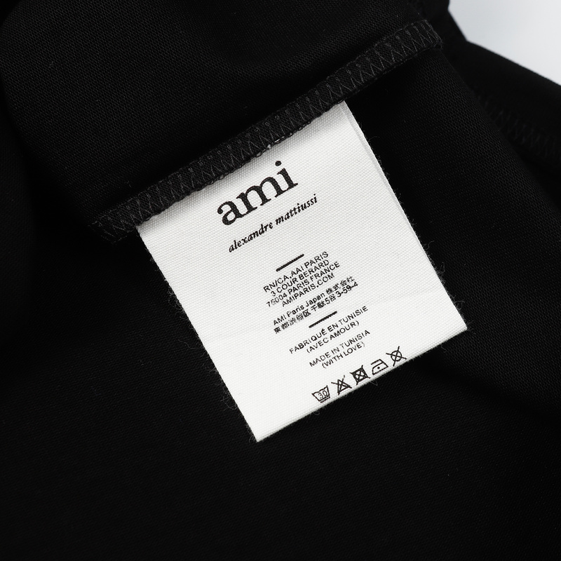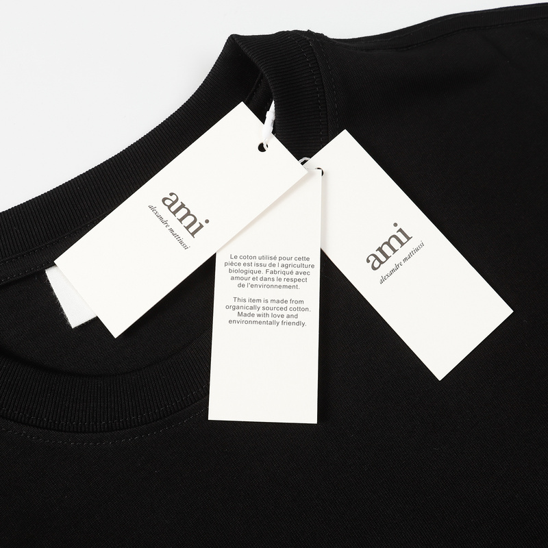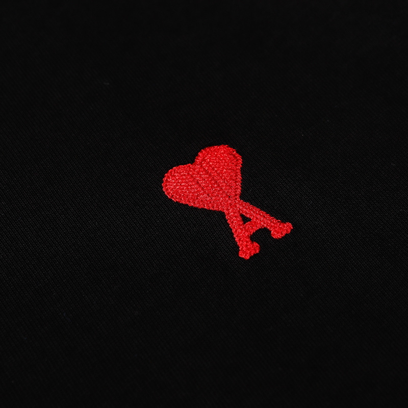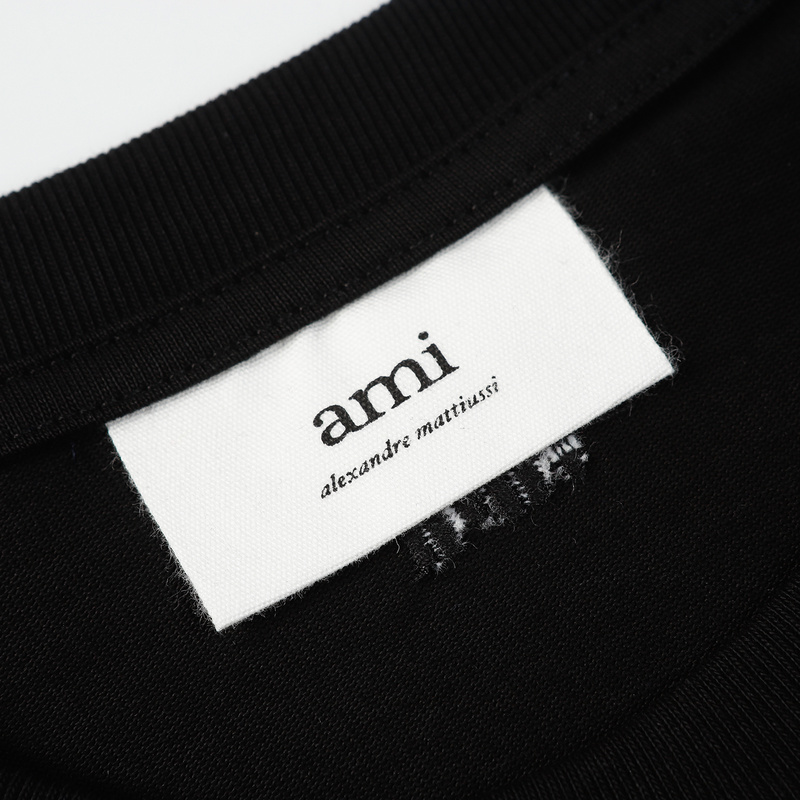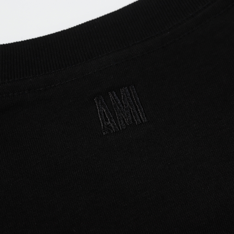 AMI чёрная футболка с фирменной вышивкой на груди и лого на спине