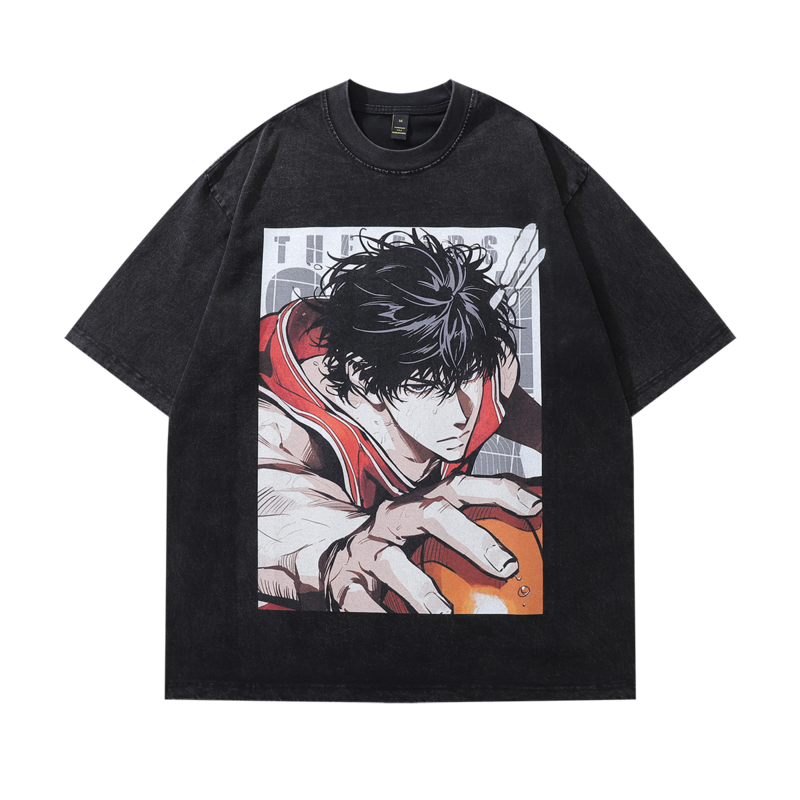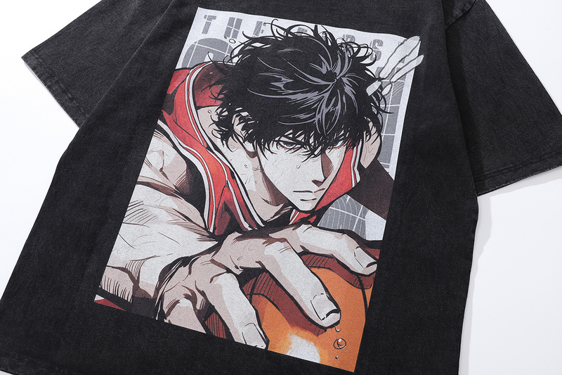 Аниме - чёрная трендовая футболка от бренда TKPA свободного кроя