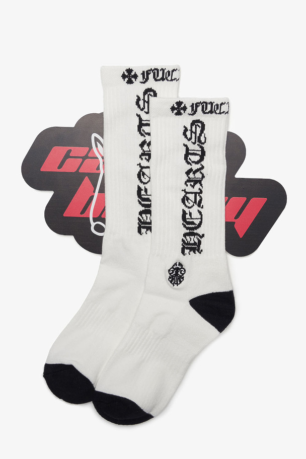 Носки Chrome Hearts белого цвета цвета в наличии представляют собой сочетание комфорта и стиля. Материал обеспечивает мягкость и долговечность, сохраняя форму после многократных стирок. Ткань обладает хорошей воздухопроницаемостью, предотвращая излишнее потоотделение. Крепкая резинка удерживает изделие на ноге, исключая скольжение. Дизайн выделяется лаконичностью и аккуратной отделкой, что делает носки универсальными для повседневного ношения и спортивных образов. Особое внимание уделено швам, они ровные и не натирают кожу, способствуя комфортному ощущению.