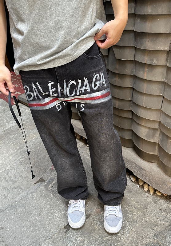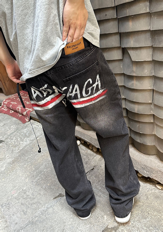 BALENCIAGA джинсы в черном цвете с напечатанным принтом