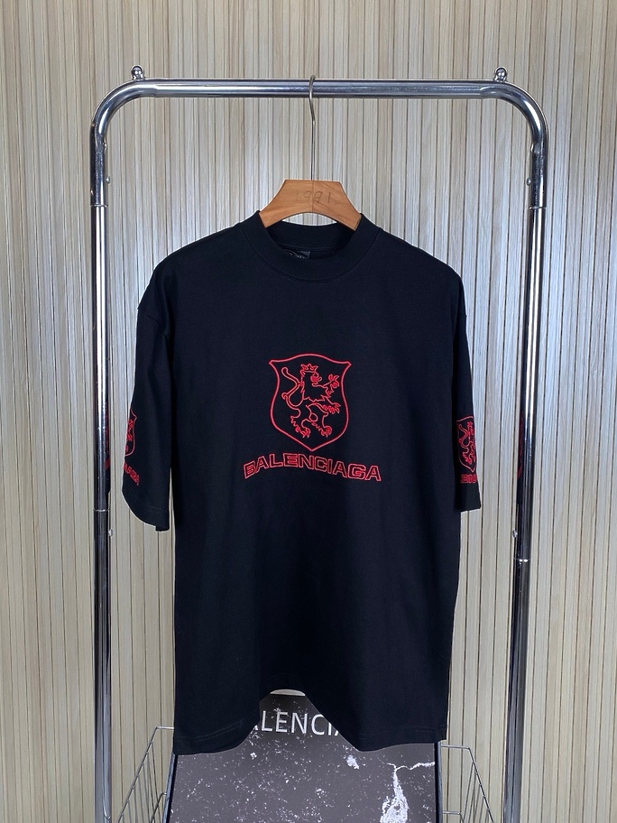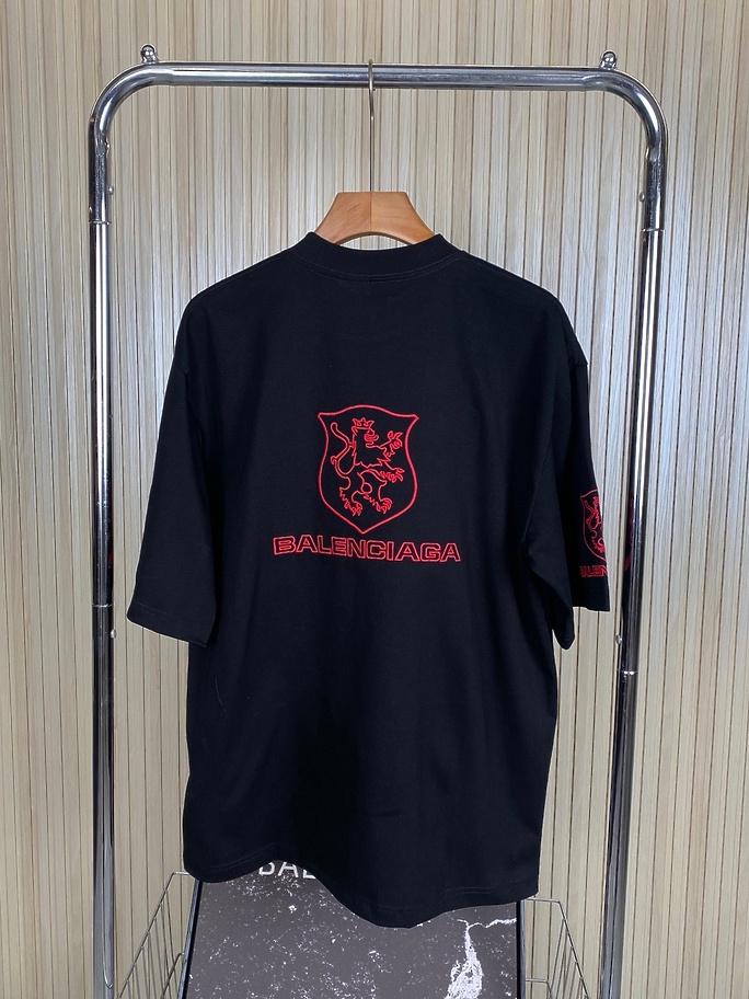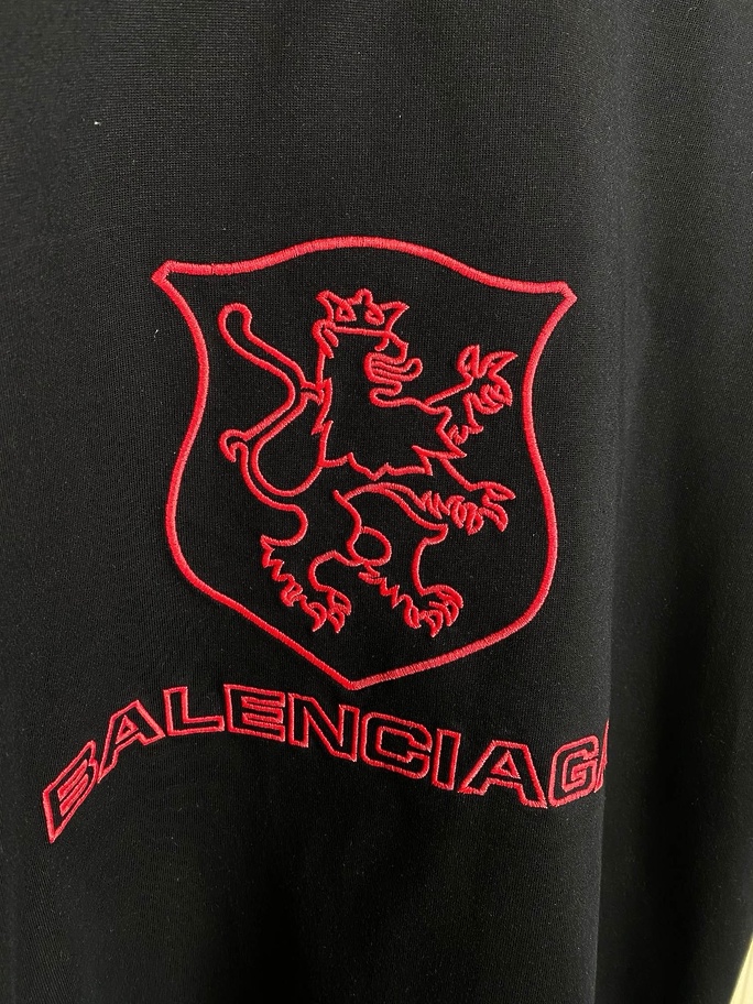 BALENCIAGA футболка черная с красным вышитым принтом