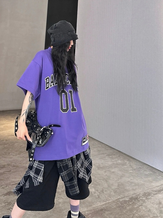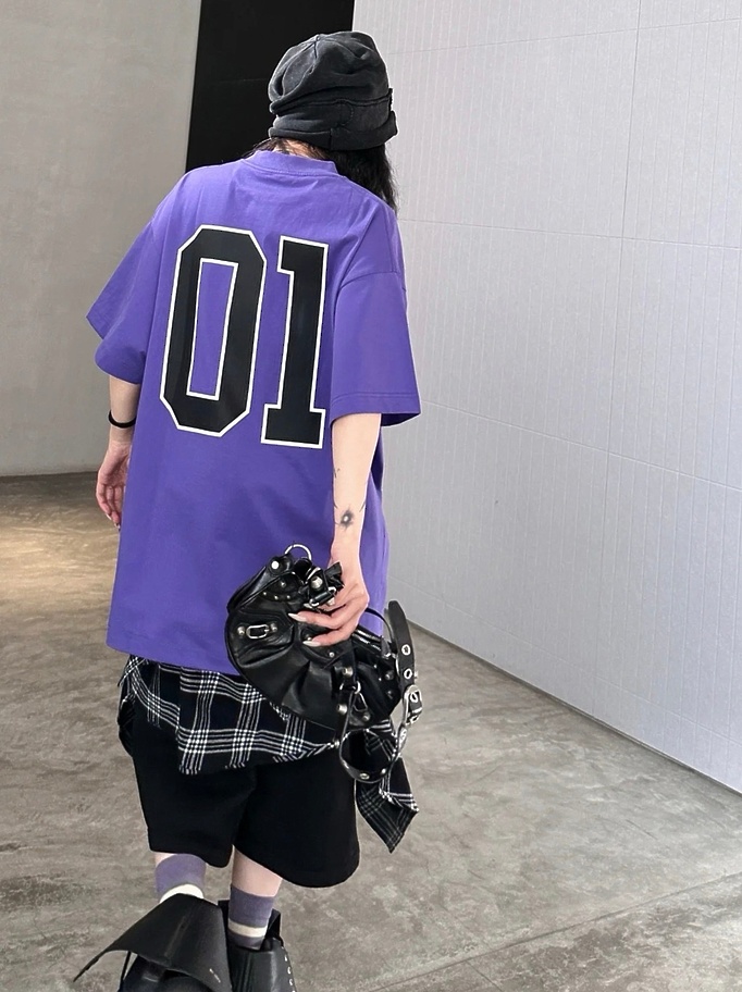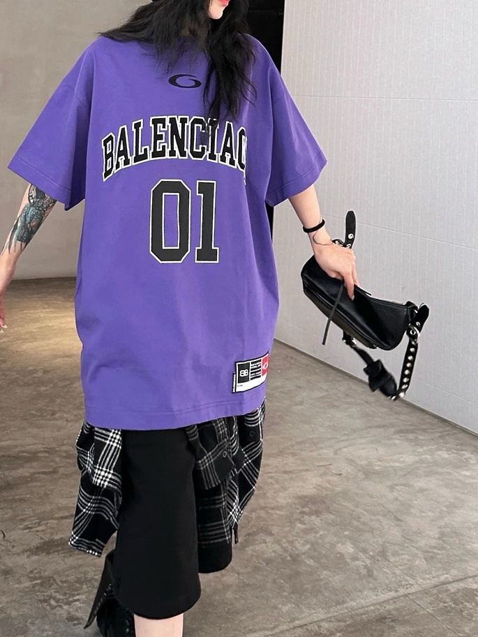 BALENCIAGA футболка фиолетовая свободного кроя с принтом