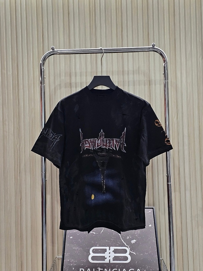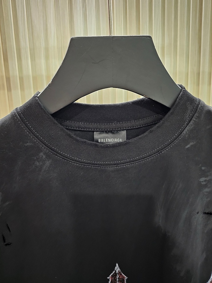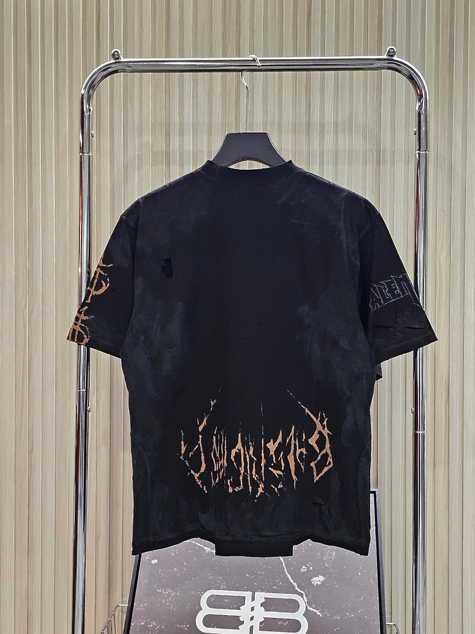 BALENCIAGA футболка с большим принтом и рваными дырками в черном цвете