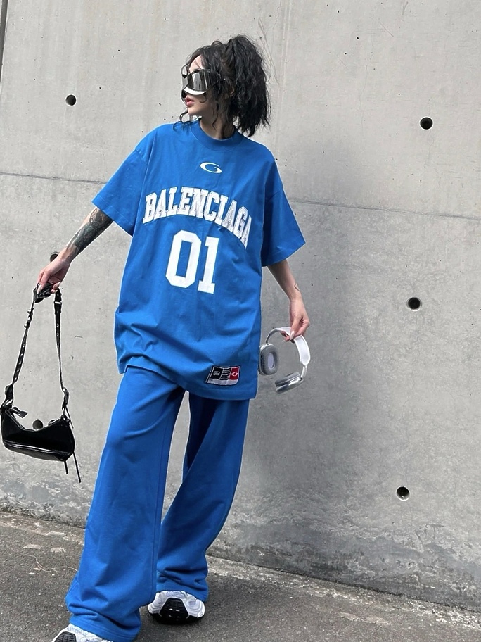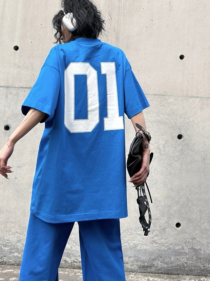 BALENCIAGA футболка в синем цвете свободного кроя с принтом цифр