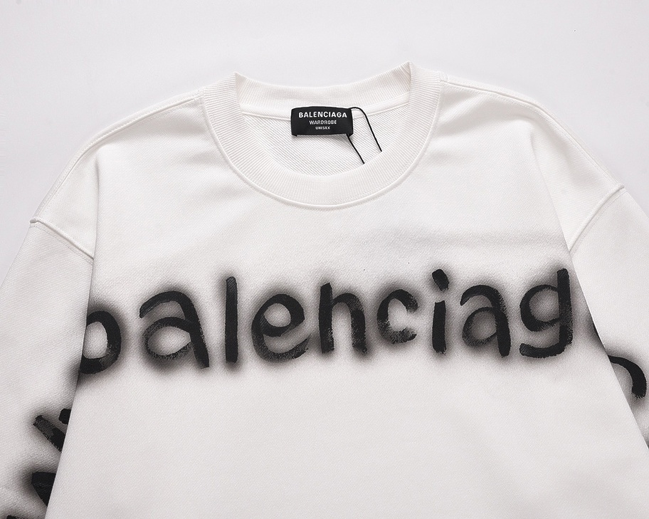 Balenciaga с черной надписью на груди и рукавах белый свитшот