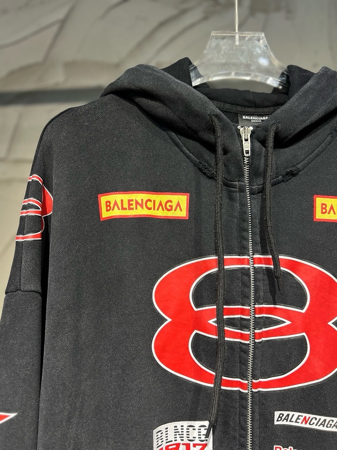 Balenciaga зип худи в на молнии в черном цвете с надписью бренда