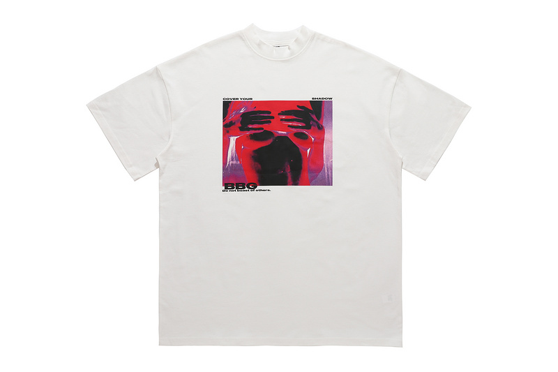 Базовая белая футболка с красным принтом "девушка прикрывающая грудь"