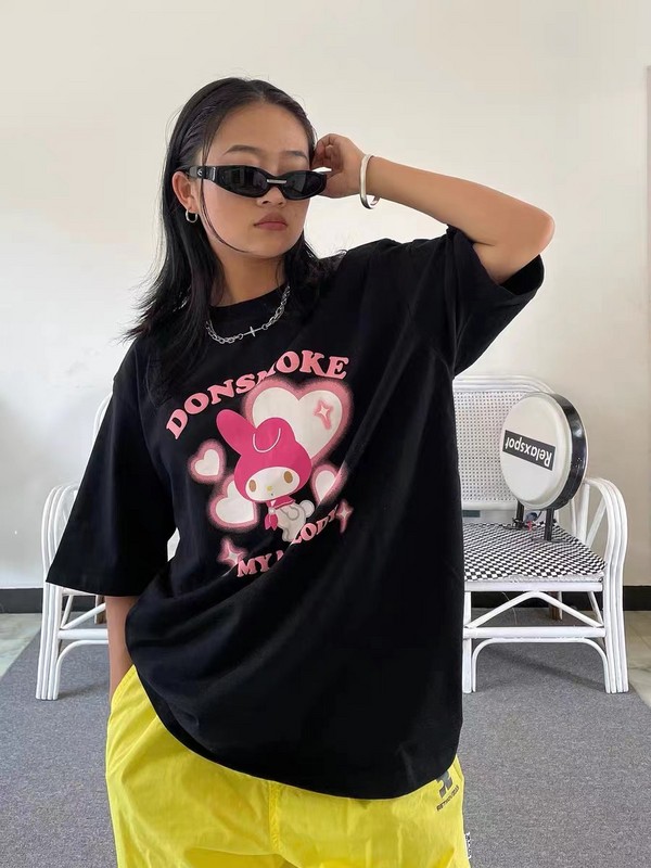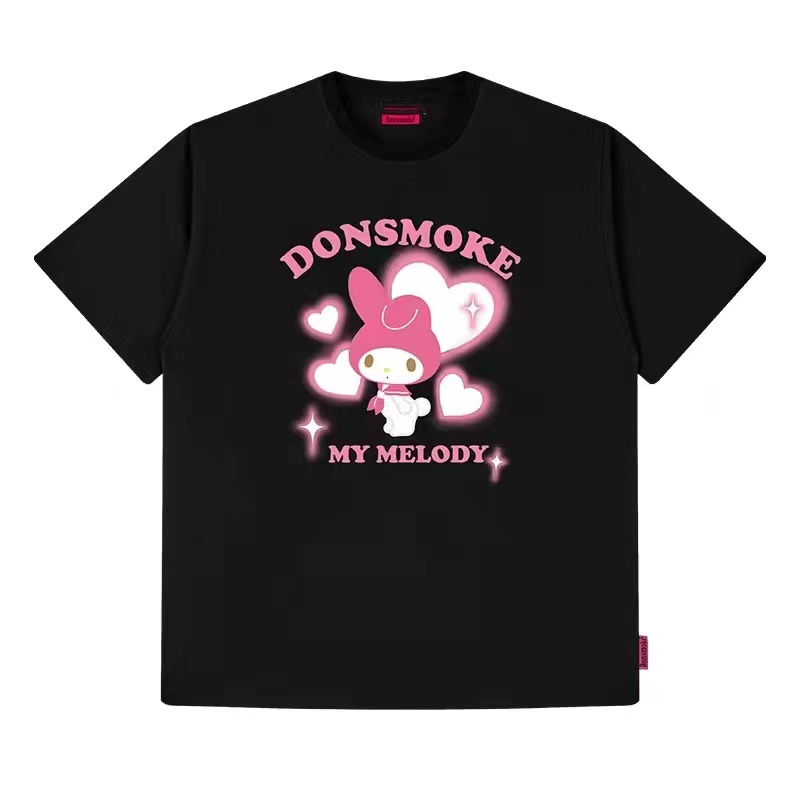 Базовая чёрная Donsmoke футболка с принтом "Бело-розовый кролик"