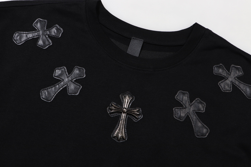Базовая чёрная футболка CHROME HEARTS с вышитыми крестами на горловине