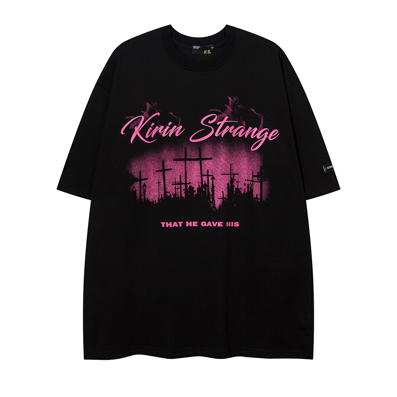 Базовая черная футболка KIRIN STRANGE с рисунком в виде крестов