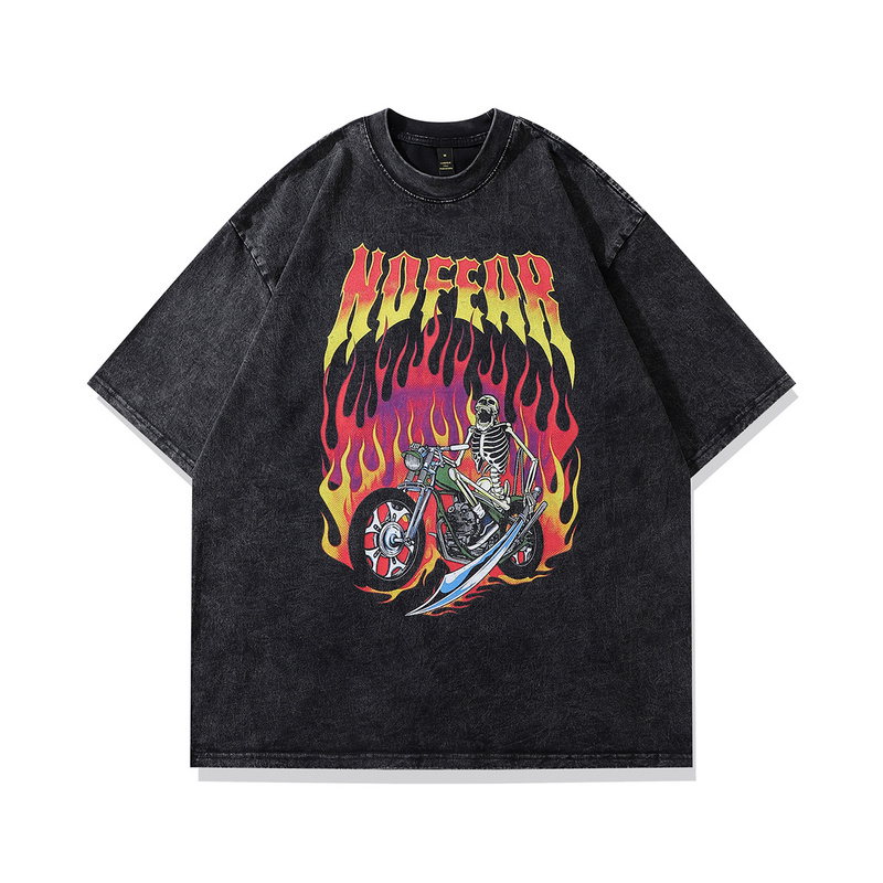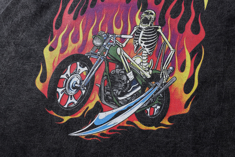 Базовая чёрная футболка от TKPA с принтом "Мотоцикл в огне"