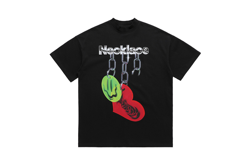Базовая черная футболка со стильным рисунком "NECKLACE" на груди