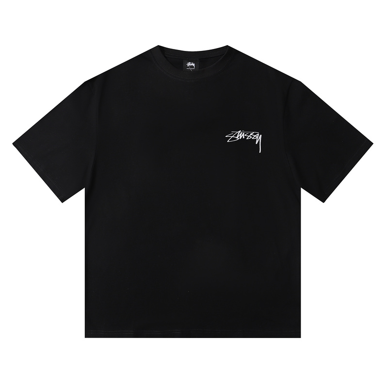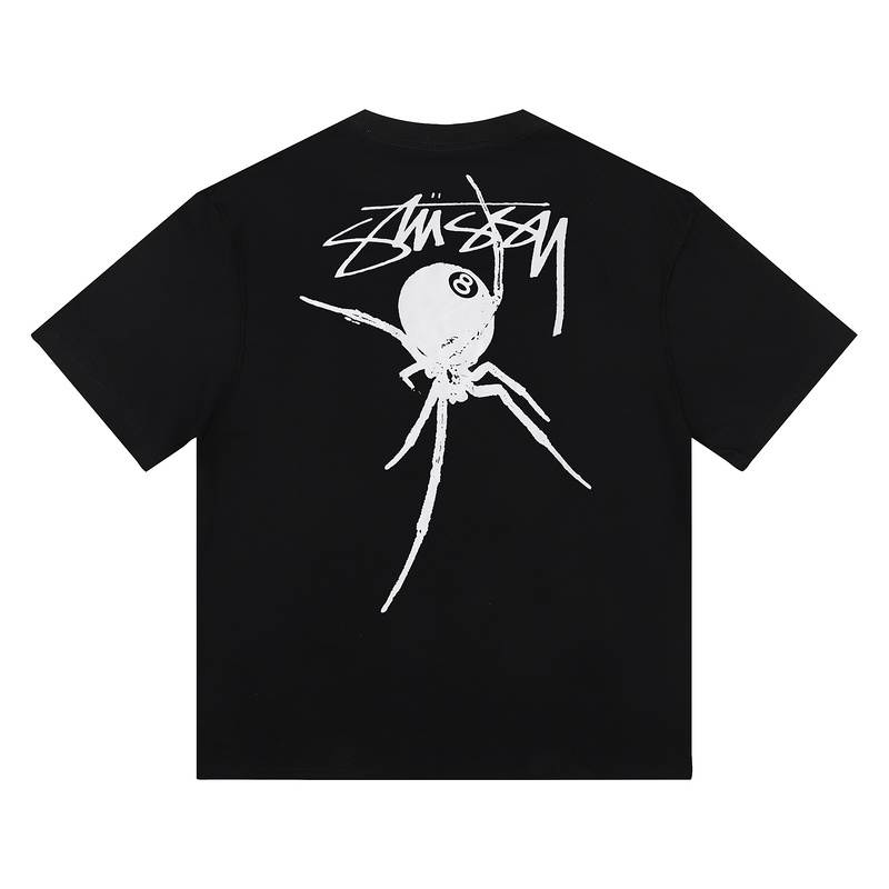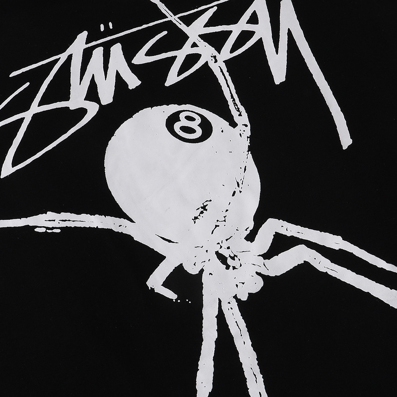Базовая чёрная с принтом "Паук" и лого Stussy футболка свободного кроя