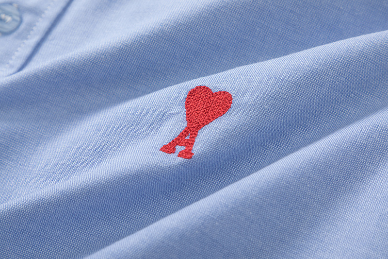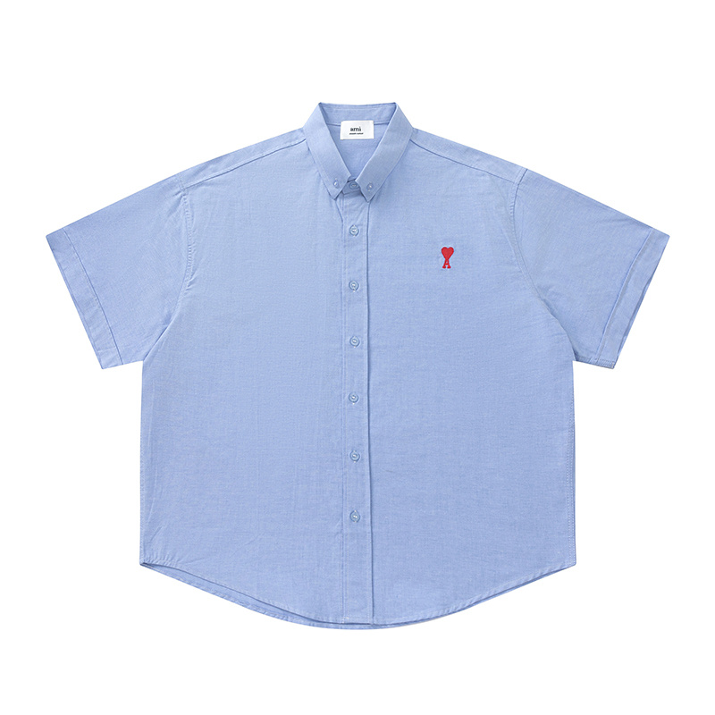 Базовая голубая с коротким рукавом рубашка AMI выполнена из хлопка