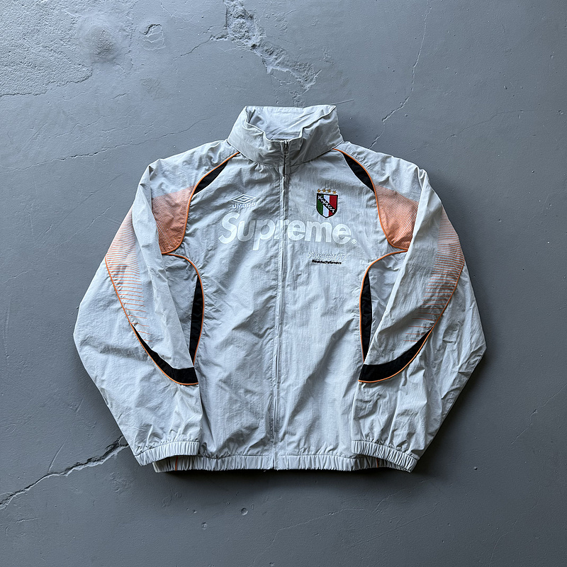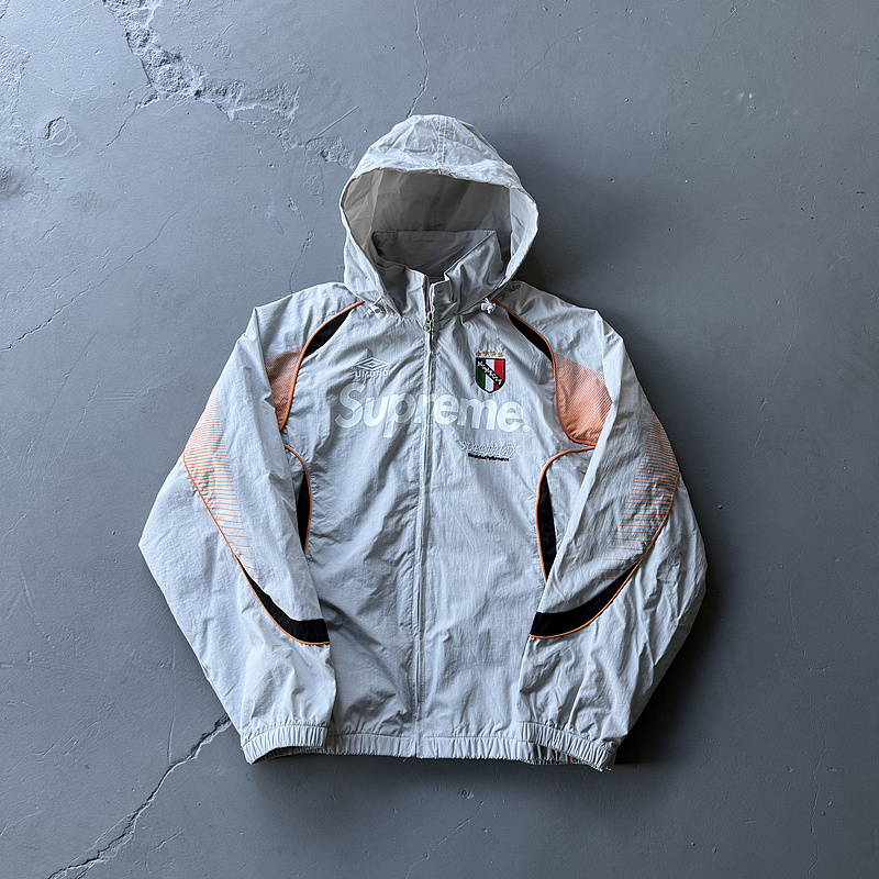 Базовая в белом цвете ветровка с большой надписью на груди Supreme