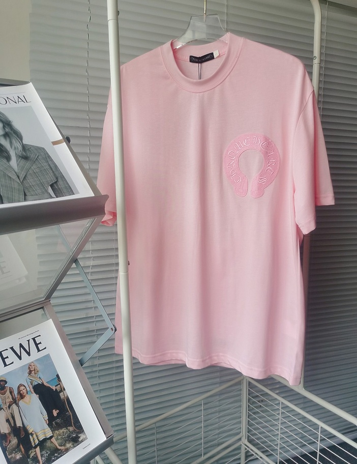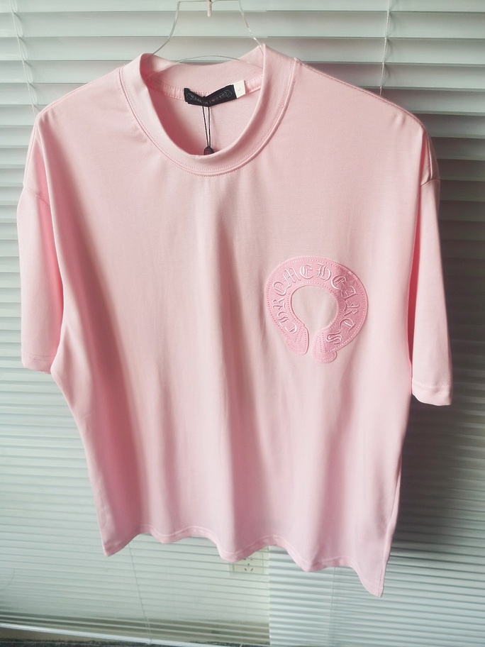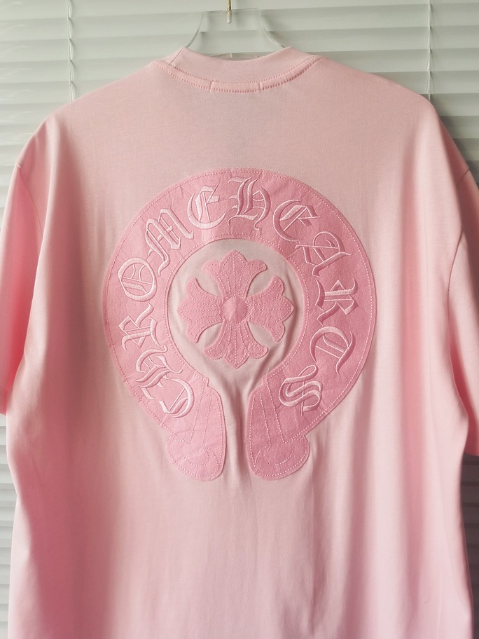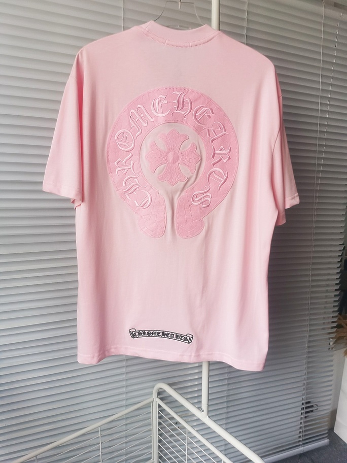 Базовая в розовом цвете CHROME HEARTS футболка с коротким рукавом
