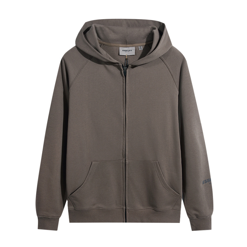 Базовое коричневое зип худи ESSENTIALS FOG с принтом