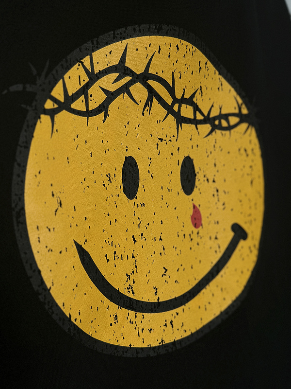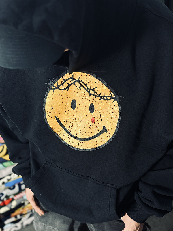 Базовое с принтом смайла на груди Saint Michael черное худи