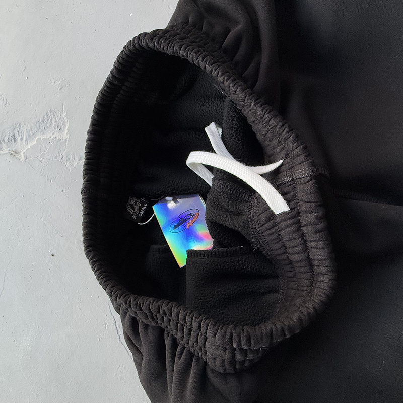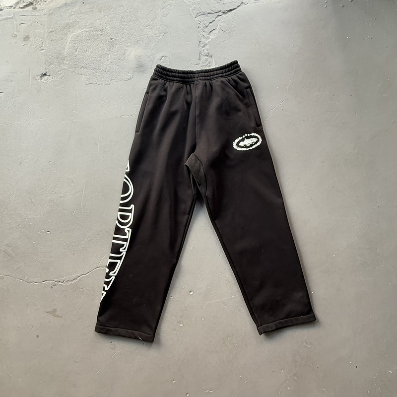 Базовые теплые штаны на резинке с надписью бренда Corteiz