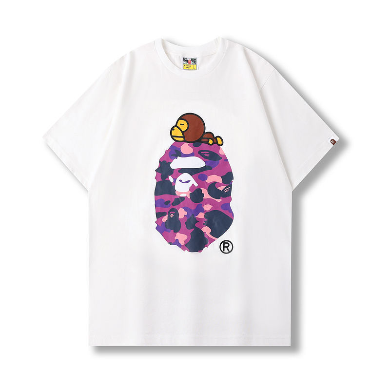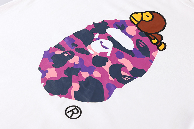 Белая футболка Bape Shark WGM c фиолетовым принтом бренда Bape