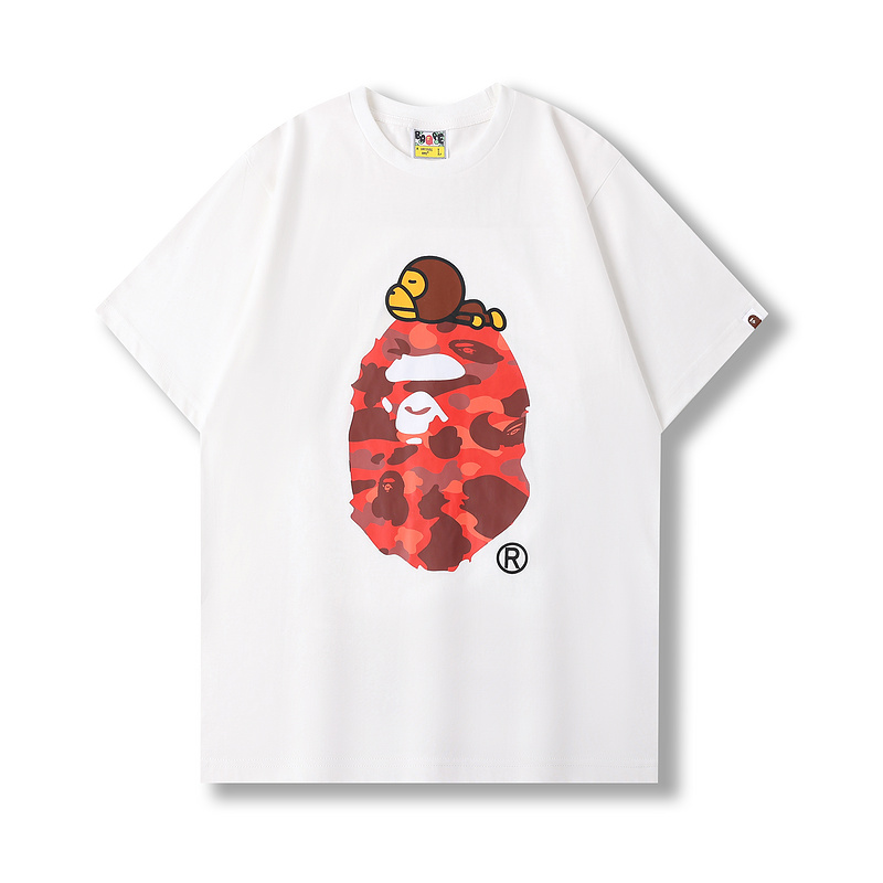Белая футболка Bape Shark WGM с красным фирменным принтом Bape