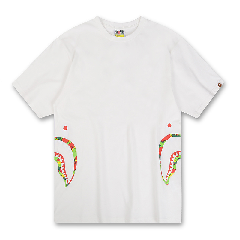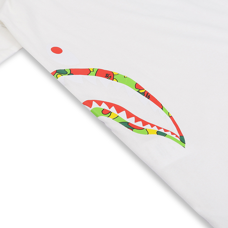 Белая футболка Bape Shark WGM с ярким небольшим принтом сбоку