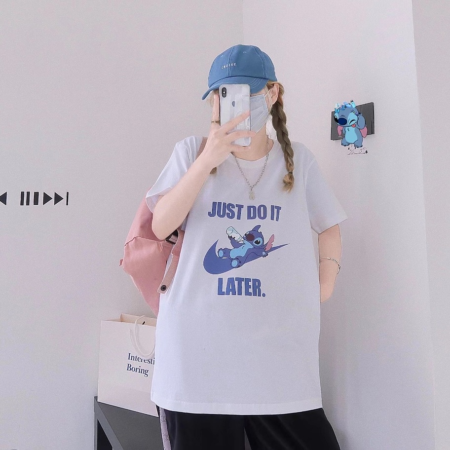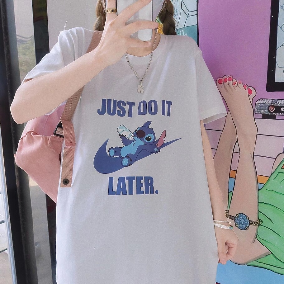 Белая футболка Nike хлопковая с принтом на груди "Стич" и надписью