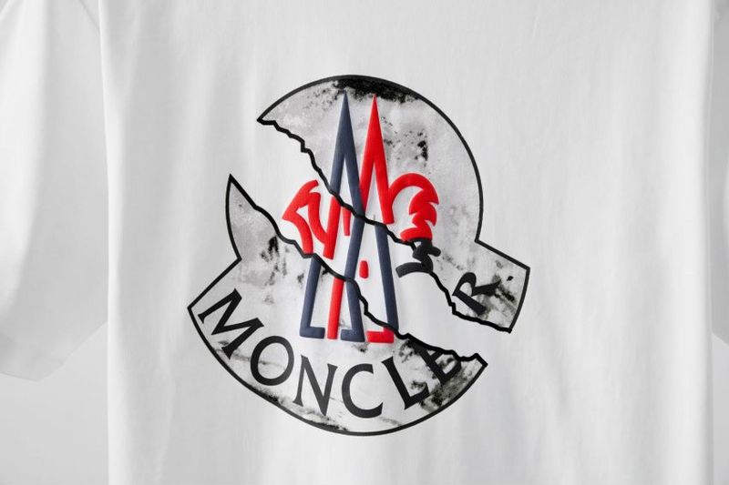 Белая футболка от бренда MONCLER с принтом и нашитым лого