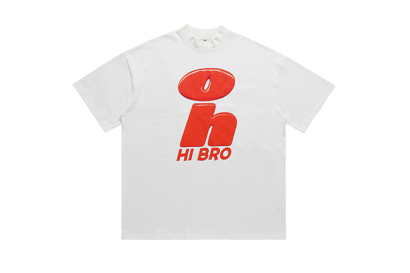 Белая футболка с брендовым принтом "HI BRO" спереди