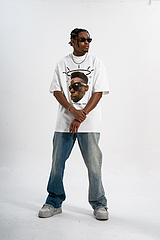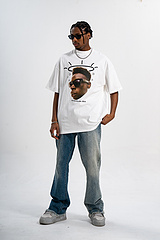 Белая футболка с фирменным принтом "Голова чернокожего мужчины"