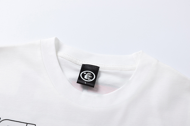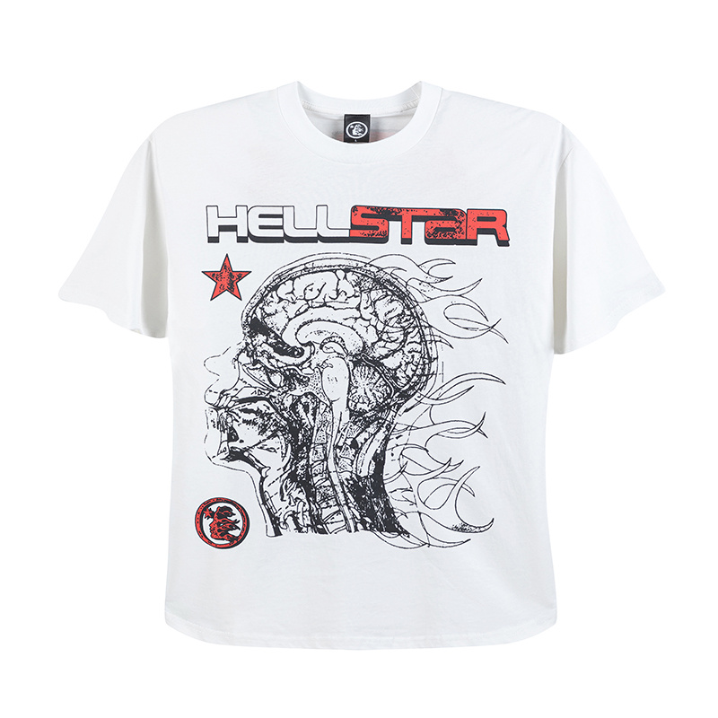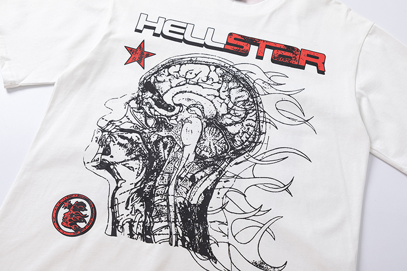 Белая футболка с графическим принтом от Hellstar и коротким рукавом