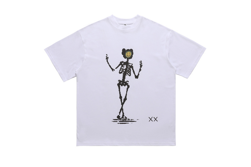Белая футболка с качественным принтом "черный скелет"