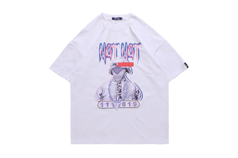 Белая футболка с рисунком "NOT NOT бюст мужчины в маске"