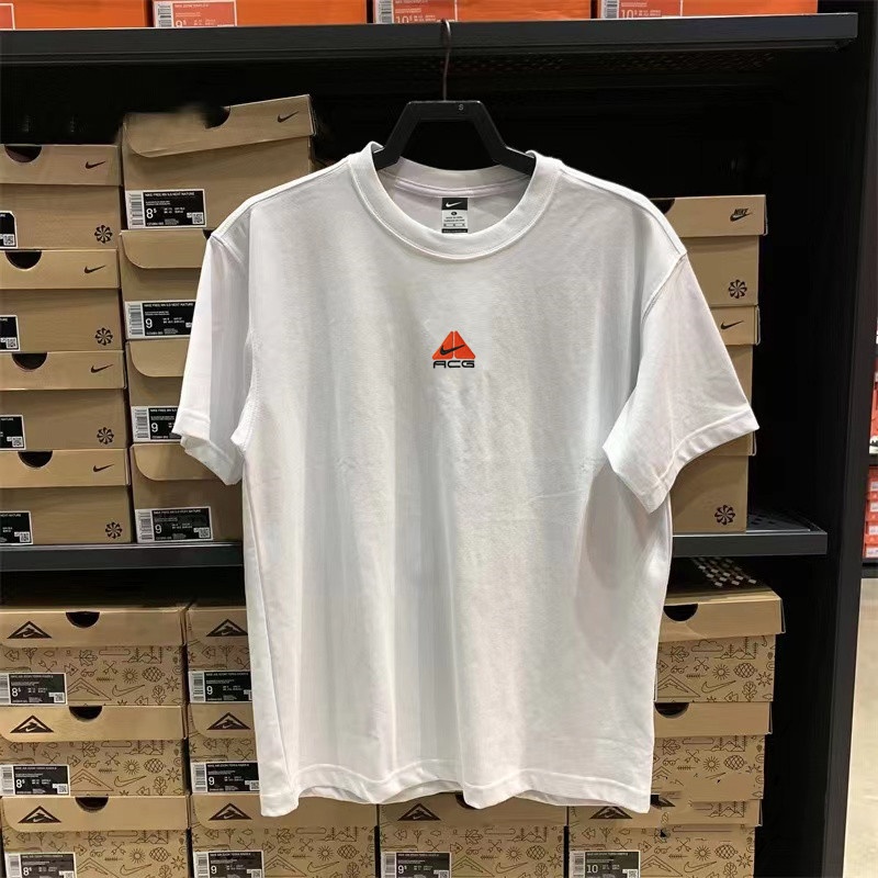 Белая Nike ACG хлопковая футболка с широкой горловиной и принтом