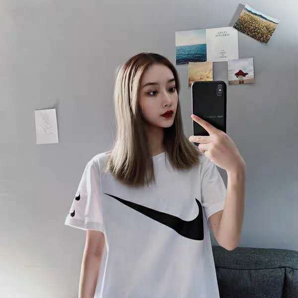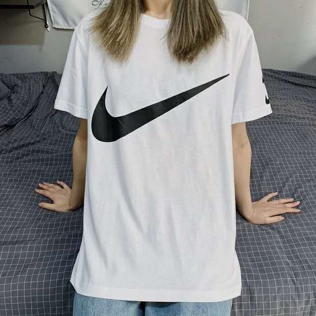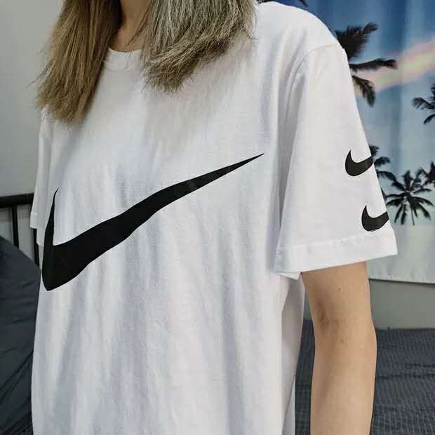 Белая Nike футболка с крупным логотипом на груди и на рукаве