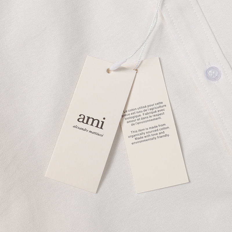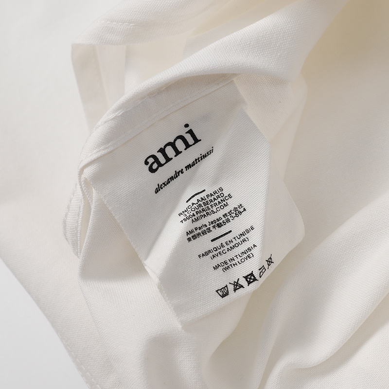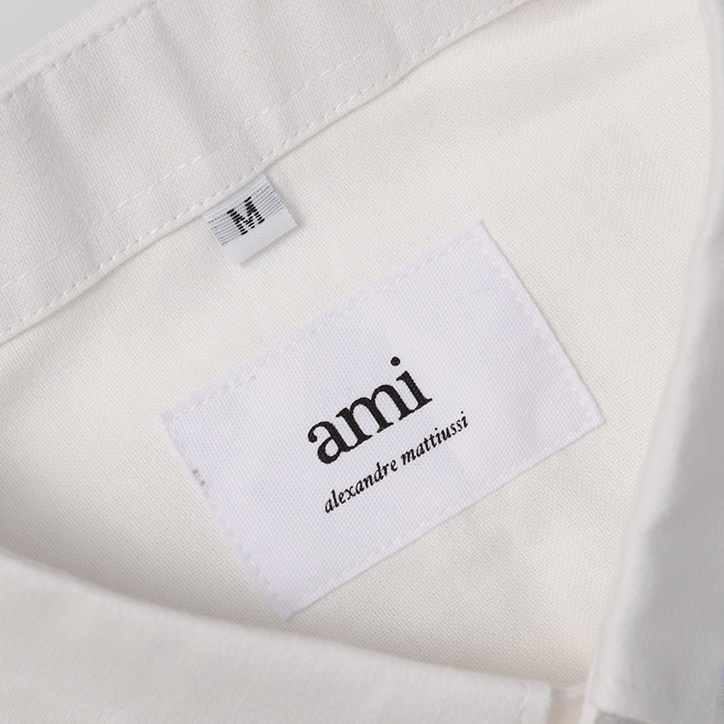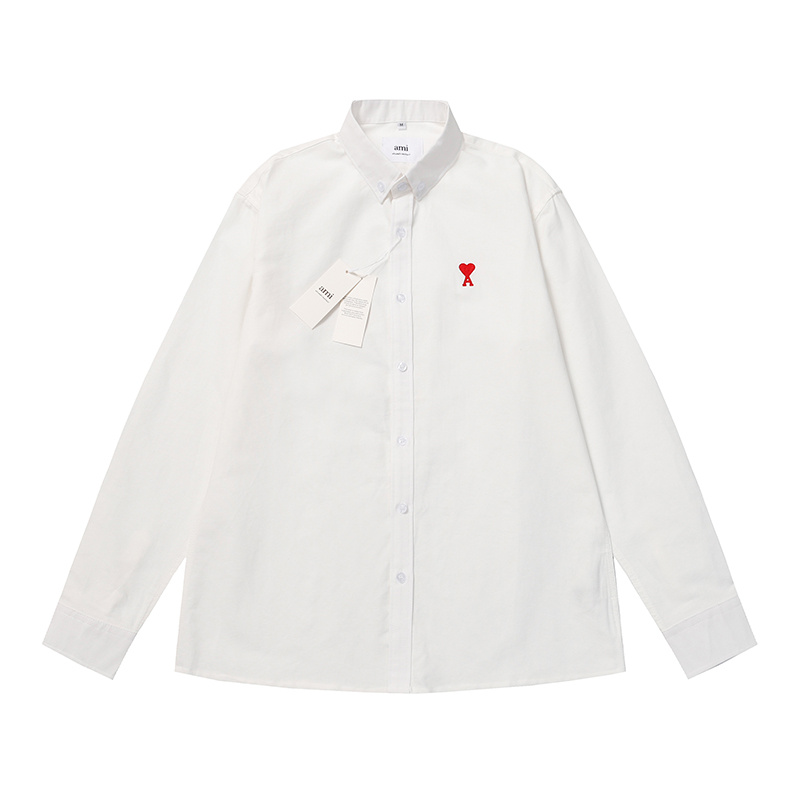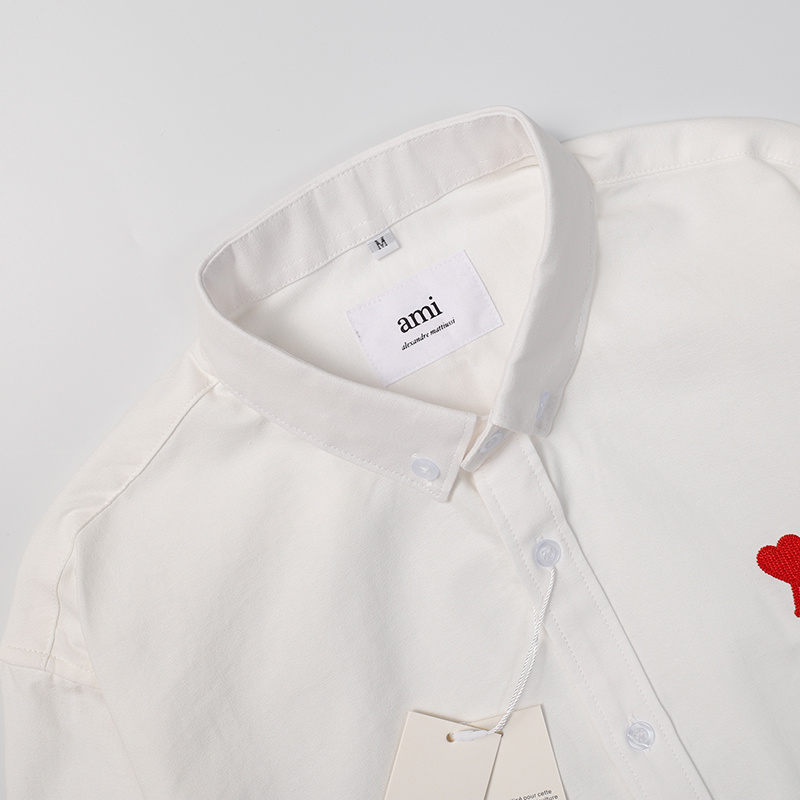 Белая рубашка с вышивкой AMI классического прямого фасона хлопковая