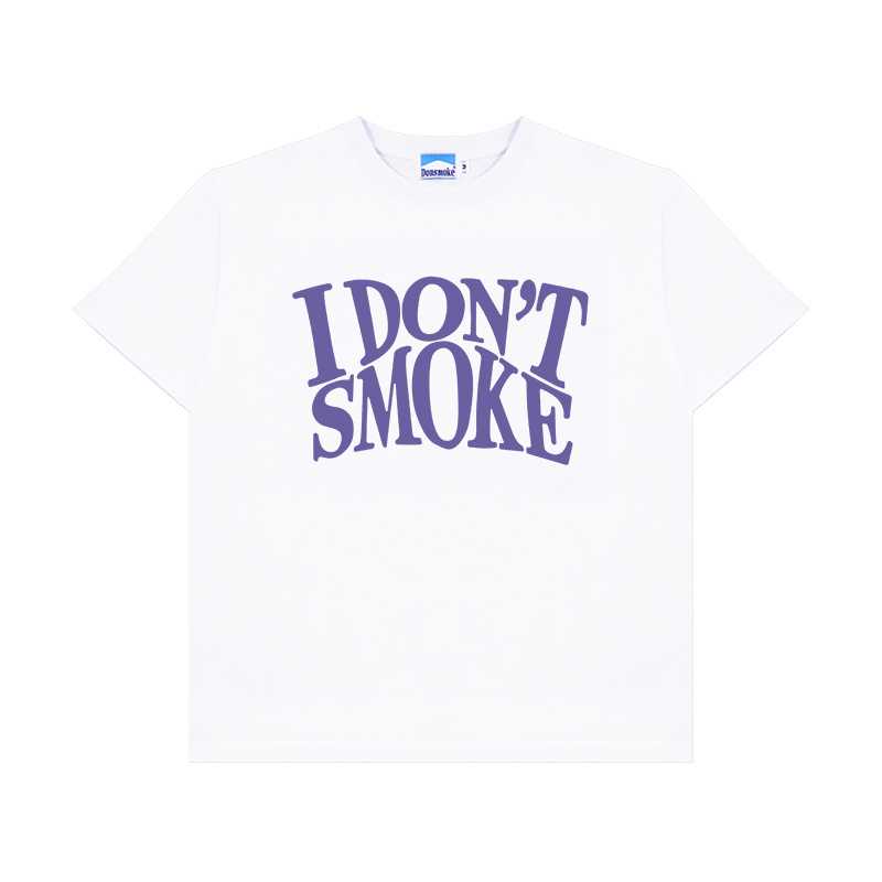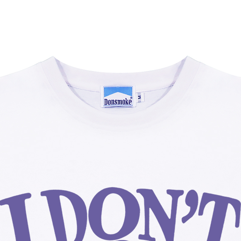 Белая с фиолетовыми надписями от бренда Donsmoke футболка из хлопка