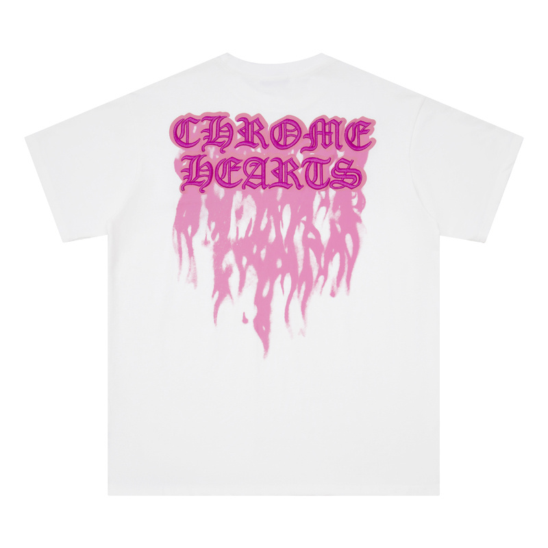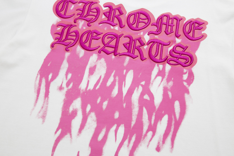 Белая с розовым лого на груди футболка Chrome Hearts из 100% хлопка