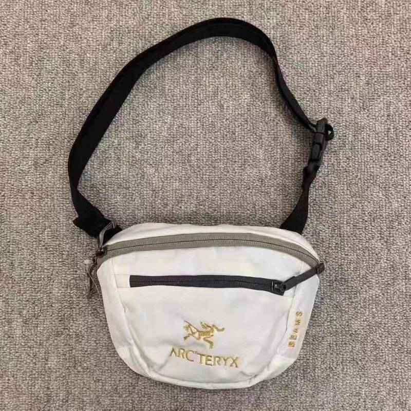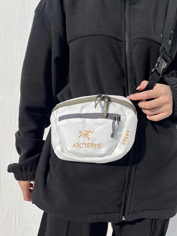 Белая сумка-бананка с логотипом Arcteryx выполнена из полиэстера