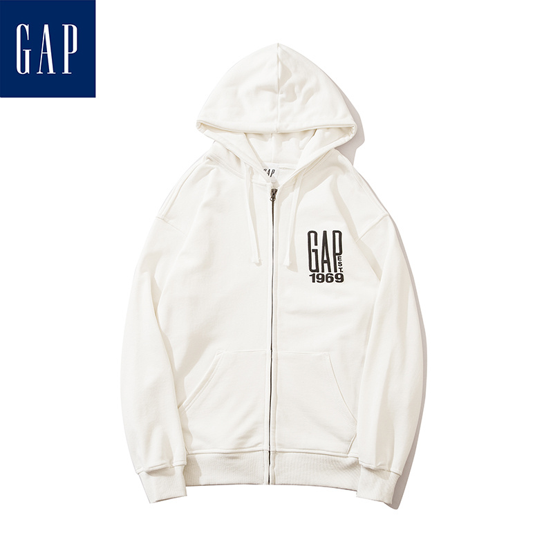 Белая толстовка на молнии с вышитым логотипом GAP и карманами
