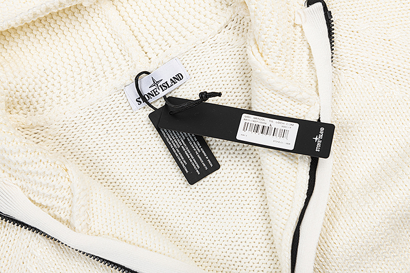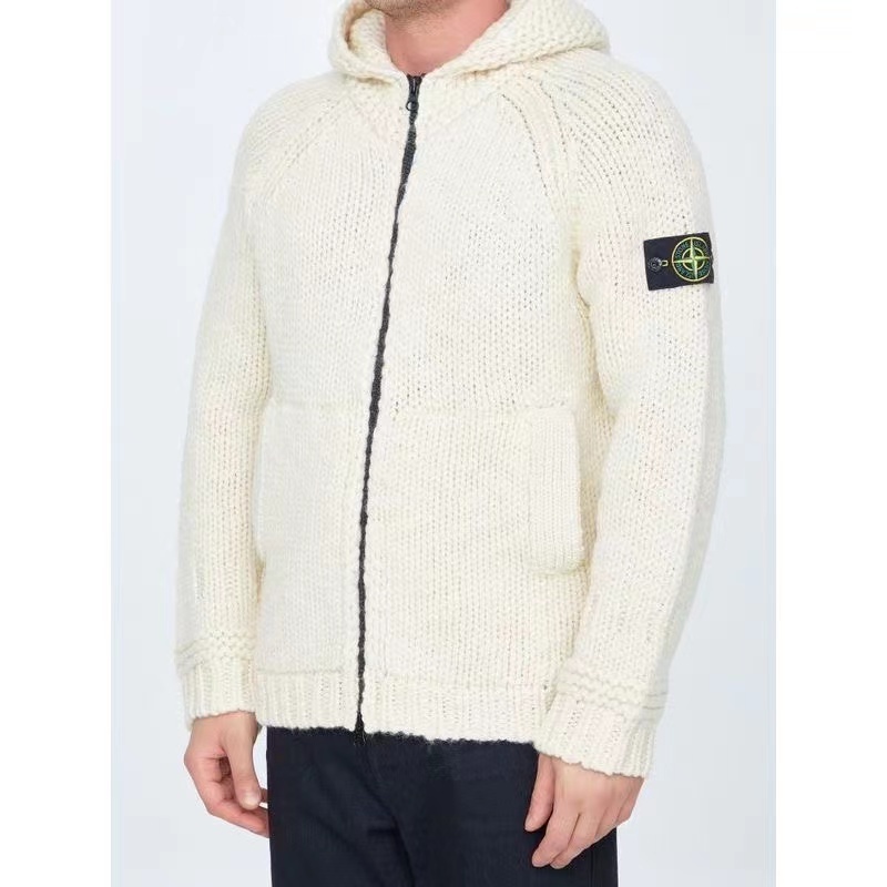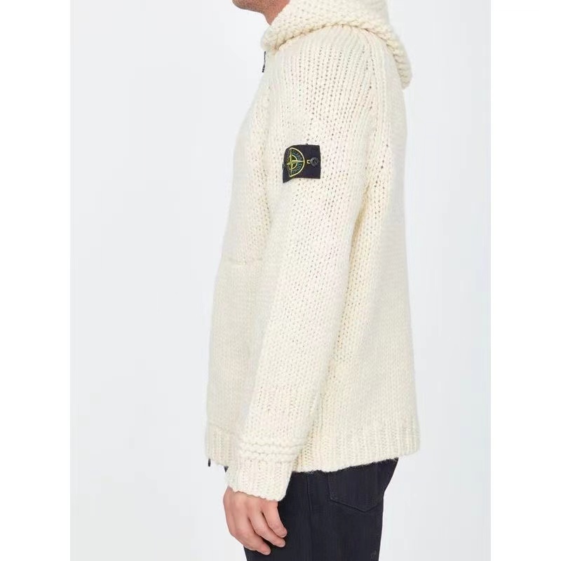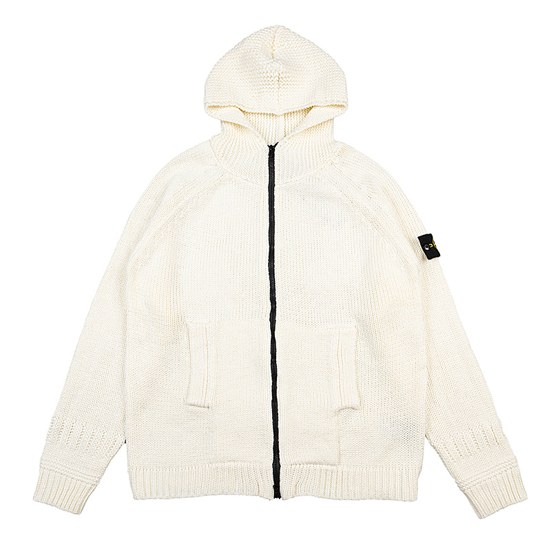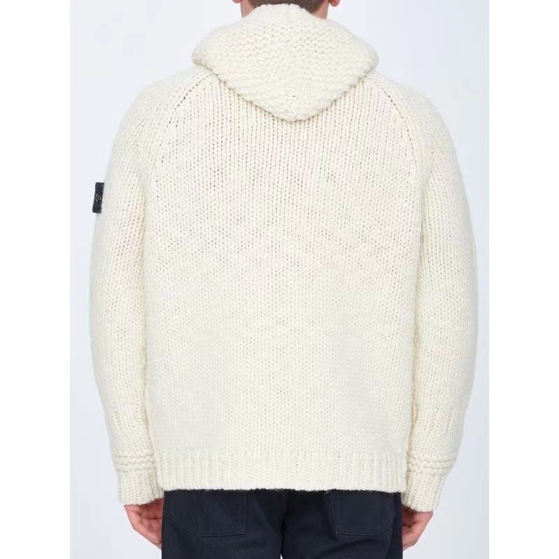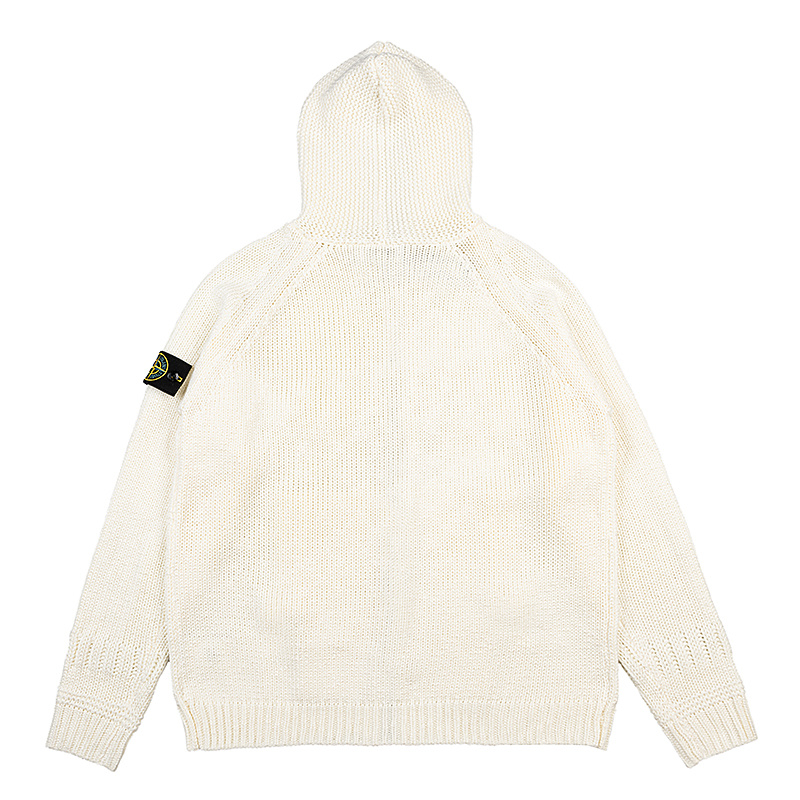 Белая вязанная толстовка на молнии Stone Island и капюшоном