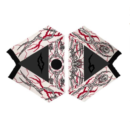 Бело-красный акриловый зимний свитер с ассиметричным принтом