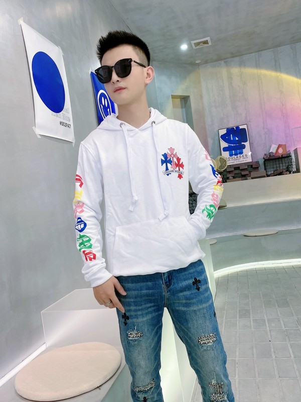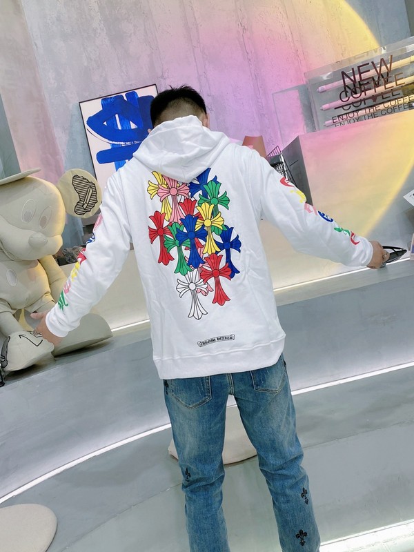 Белое Chrome Hearts худи с разноцветными крестами на рукавах и спине