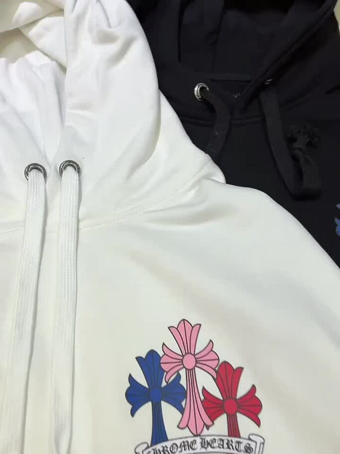Белое классическое худи CHROME HEARTS с разноцветным рисунком