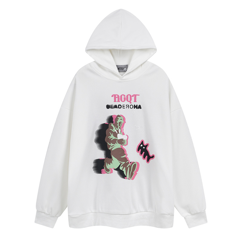 Белое простое худи ACQT с печатью "Шагающий человек"
