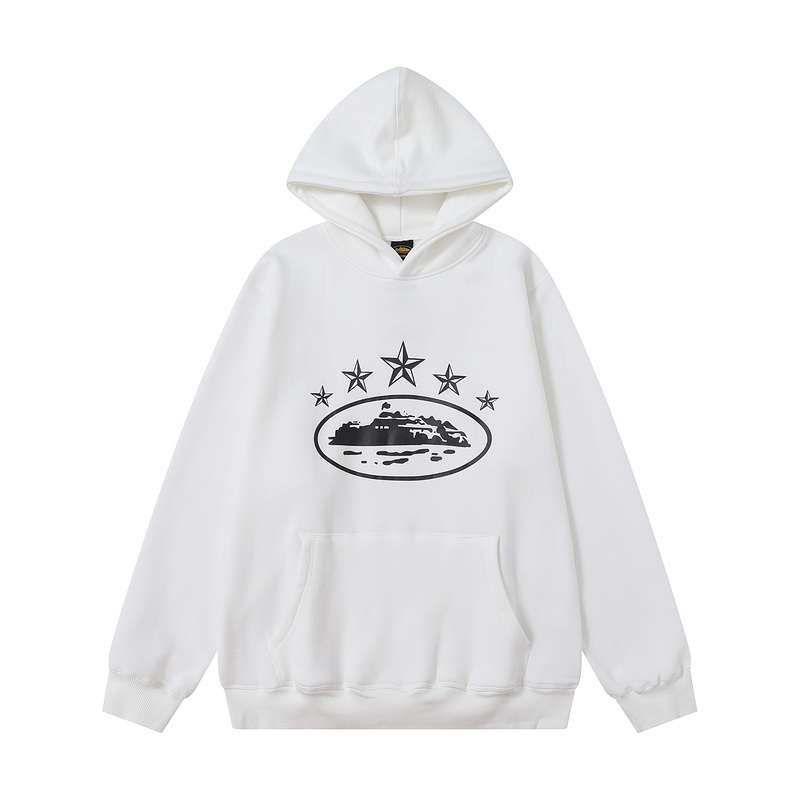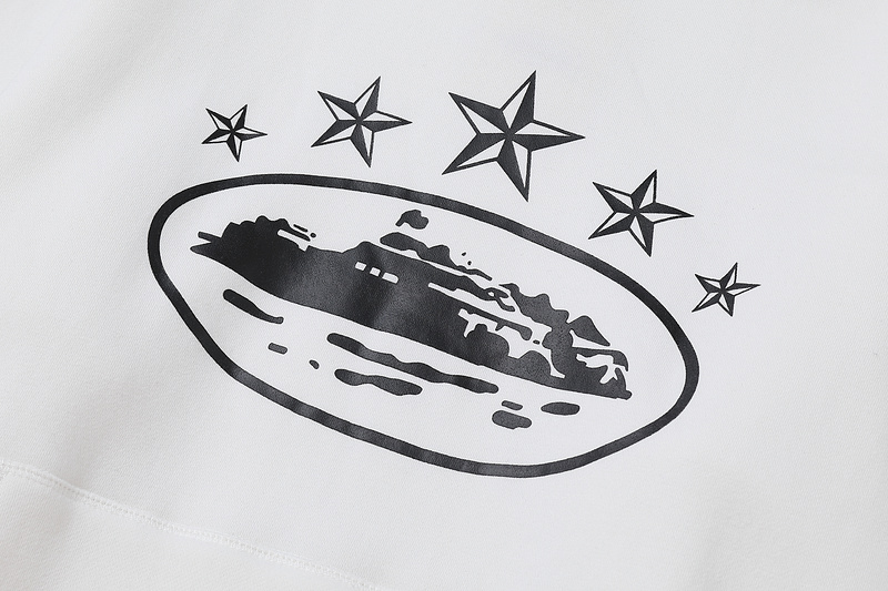 Белое с начесом худи от бренда Corteiz с нашитым карманом-кенгуру