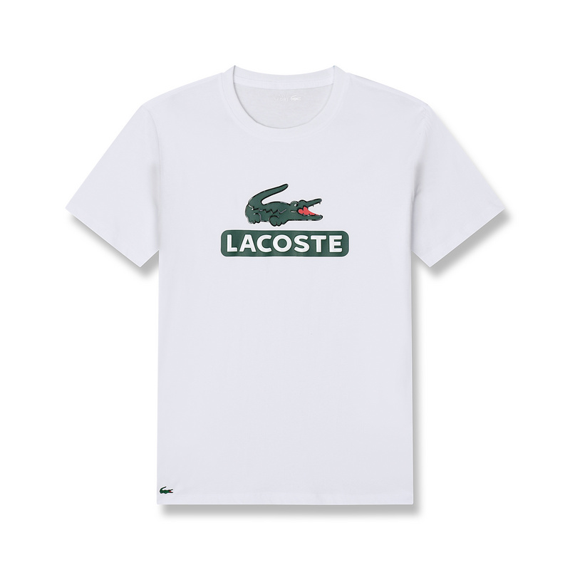 Белого цвета футболка с напечатанным принтом на груди LACOSTE