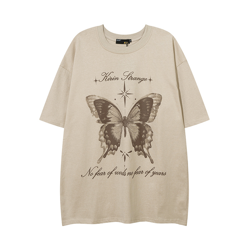 Бежевая футболка с бабочкой от бренда KIRIN STRANGE